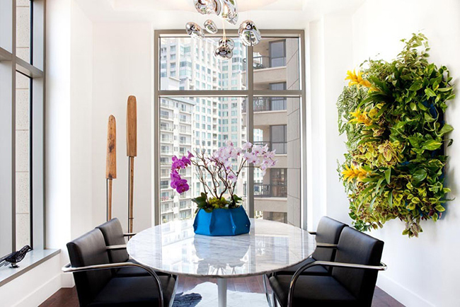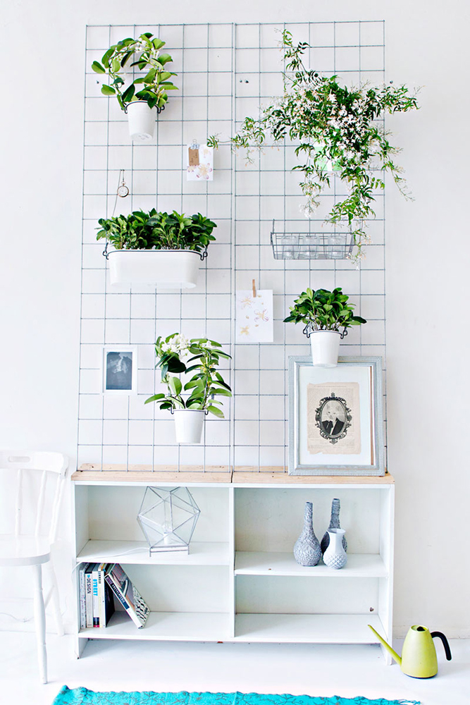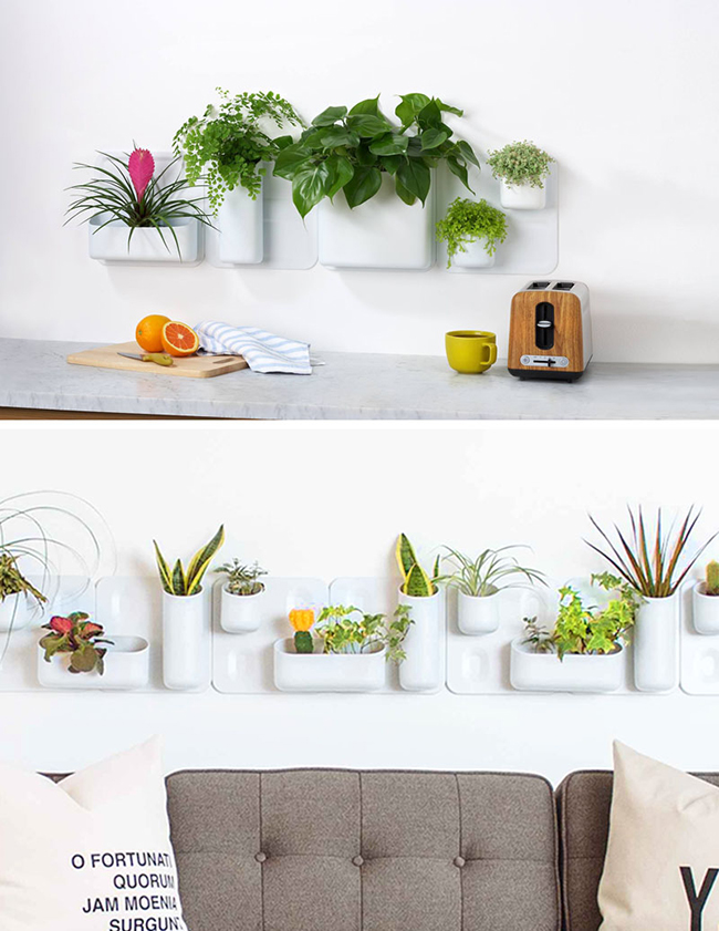 จัดสวนในกระถางวางเรียงกันแล้วแขวนติดผนังจัดวางดีๆ ให้คล้ายงานศิลป์ ก็เป็นอีกแนวทางเพิ่มธรรมชาติให้บ้านคุณ