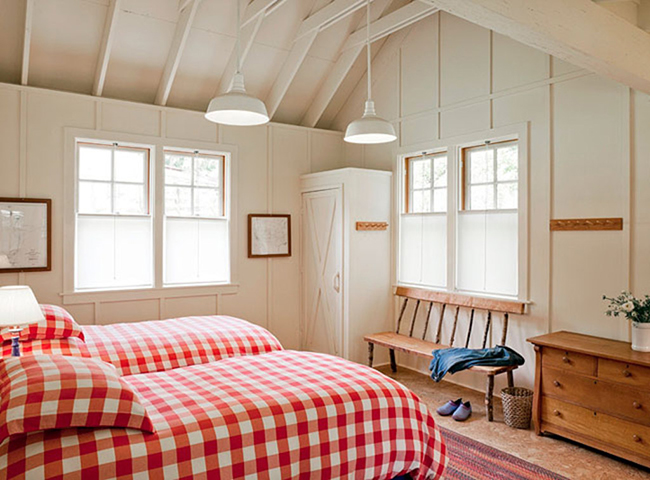 ห้องนอนเรียบง่าย มีหน้าต่างหลายบานเพื่อรับแสงรับลมจากธรรมชาติ