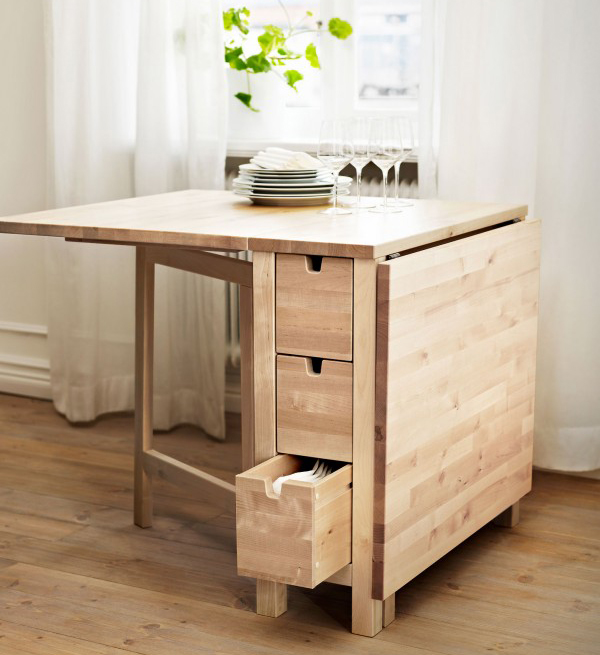โต๊ะกินข้าวขนาดสองที่นั่งที่สามารถขยายเพิ่มพื้นที่ได้อีกเท่าตัว เวลาต้องการพื้นที่เพิ่มก็แค่กางบานพับตั้งฐานไม้ ง่ายๆ