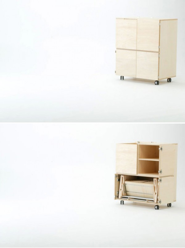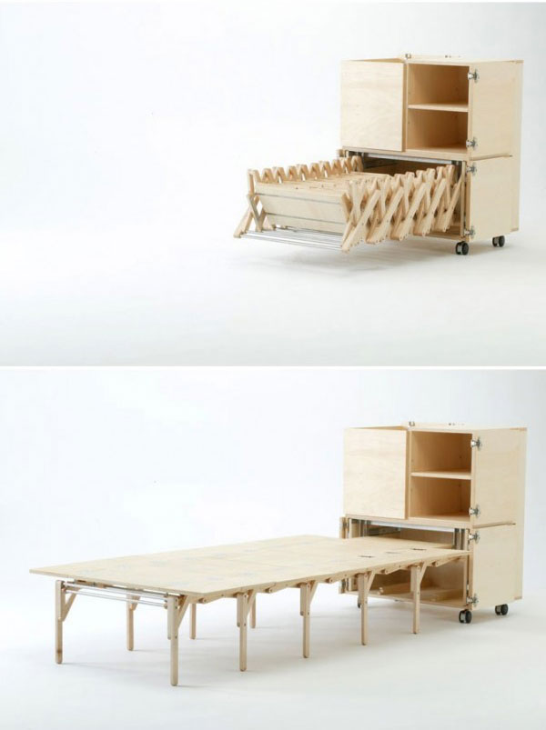 ตู้เล็กๆ มีล้อให้เคลื่อนย้ายได้ง่าย ไม่น่าเชื่อว่าภายในจะสามารถขยายเป็นโต๊ะออกมาได้ยาวขนาดนี้