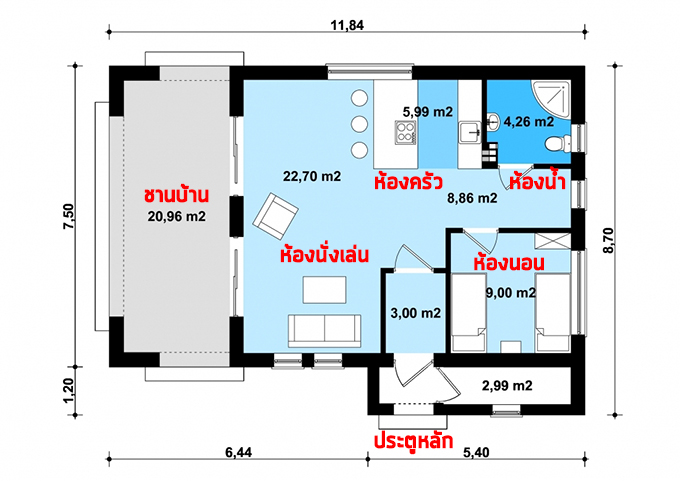 ใครที่ชอบความเรียบง่าย มินิมอลเบาๆ สบายๆ น่าจะถูกใจแบบบ้านที่ CheckRaka.com นำมาฝากในวันนี้ค่ะ แบบบ้านสไตล์โมเดิร์นชั้นเดียว 1 ห้องนอน 1 ห้องน้ำ พื้นที่โดยรวมไม่เยอะ เหมาะกับครอบครัวขนาดเล็ก