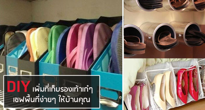 ให้มีรองเท้าแค่ 2-3 คู่คงไม่เพียงพอสำหรับใครหลายคน ยิ่งโดยเฉพาะสาวๆ ที่รักการแต่งตัวด้วยแล้วจำนวนรองเท้าน่าจะมีกันเป็นสิบ เมื่อมีรองเท้าหลายคู่ก็เริ่มจะปัญหารกกวนใจก็ตามมา เพราะรองเท้ายิ่งเพิ่ม ที่เก็บของในบ้านก็ยิ่งหด หาซื้อตู้วางชั้นวางรองเท้าก็แล้วก็ยังล้นออกมาเกะกะบ้านอยู่ดี ถ้างั้นลองไปดูไอเดียดีๆ ทำตามได้ง่าย สไตล์ DIY รับรองว่าเพิ่มพื้นที่เก็บรองเท้าแบบเป็นระเบียบให้คุณได้อีกเพียบ
