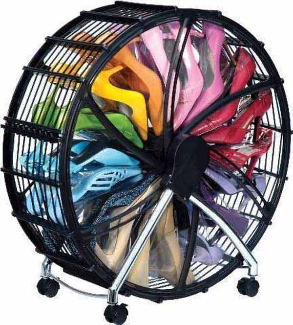 รองเท้าส้นสูงเอามาเรียงจัดเก็บใส่โครงทรงกลมแบบนี้เซฟพื้นที่ได้เยอะดี