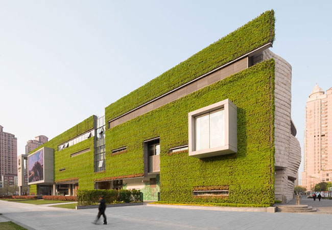 กำแพงมอสของ Shanghai Natural History Museum ไม่ได้โดดเด่นภายนอกเท่านั้น ภายในได้แรงบันดาลใจจากสวนจีนดั้งเดิมและกำแพงทรงเรขาคณิตโค้งเลียนแบบหอย Nautilus