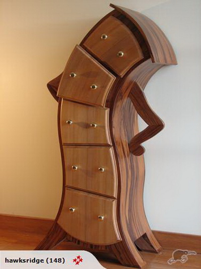 ตู้ชั้นวางของ โค้งงอ ตรงมือจับดึงลิ้นชักเหมือนลูกตา แถมยังมีแขนอีกต่างหาก