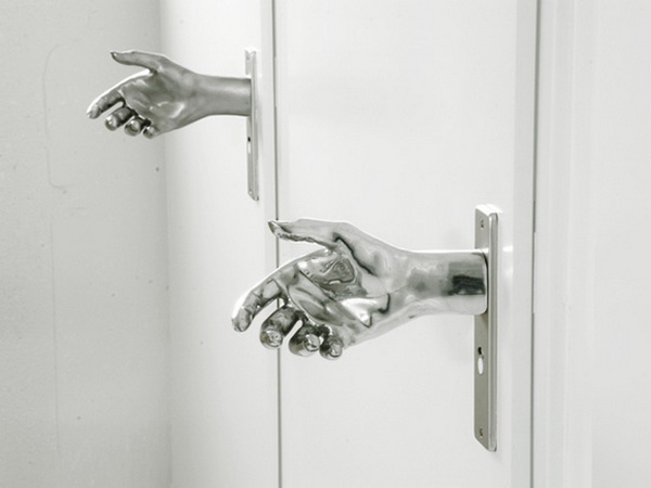ลูกบิดประตูรูปมือ เปิด-ปิดประตูให้อารมณ์เหมือนกำลังเช็คแฮนด์กับประตู ถ้าไม่โดนบีบมือกลับก็ไม่หลอนเท่าไหร่