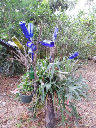 ขวดแก้วสีสันต่างๆ ลองเอามาปักกับต้นไม้แห้ง ให้ดูมีสีสันขึ้นมา