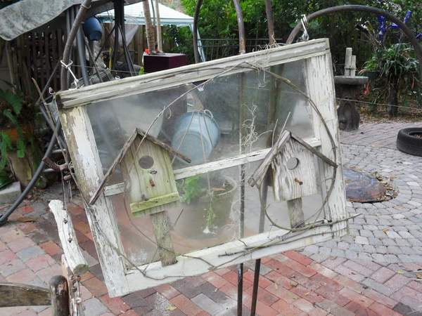 กรอบหน้าต่างเก่าๆ กับเศษไม้ นำมาประยุกต์รวมกันให้กลายเป็นรูปทรงต่างๆ ไว้ประดับสวนในบ้าน