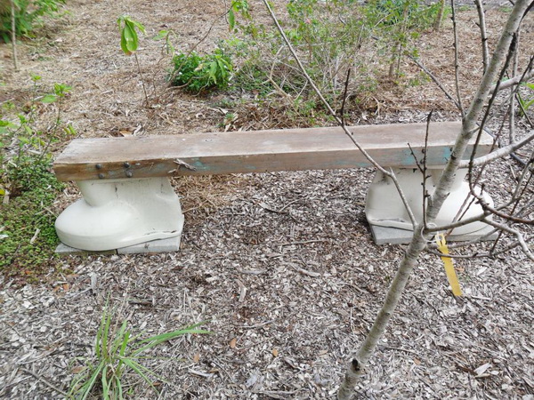 แท่นชักโครกที่พังแล้ว ถ้ามีซัก 2 อัน สามารถเอามาทำเป็นขารองเก้าอี้ม้านั่งแบบนี้ก็ได้นะคะ