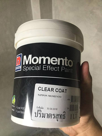ขั้นตอนที่ 6 ทิ้งไว้ 1 คืน ใช้น้ำยาเคลือบ Clear Coat คนๆ แล้วค่อยทารอบแรกเนื้อปูนจะดูดน้ำยาเยอะหน่อย