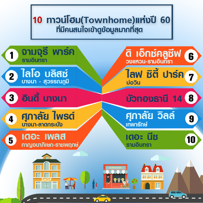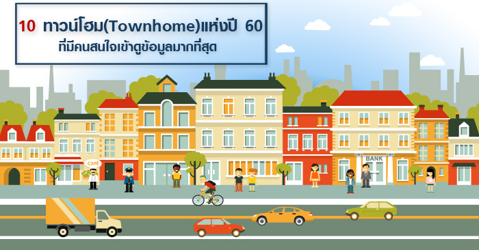 10 ทาวน์โฮม (Townhome) แห่งปี 60 ที่มีคนสนใจเข้าดูข้อมูลมากที่สุด ในเว็บไซต์ CheckRaka.com