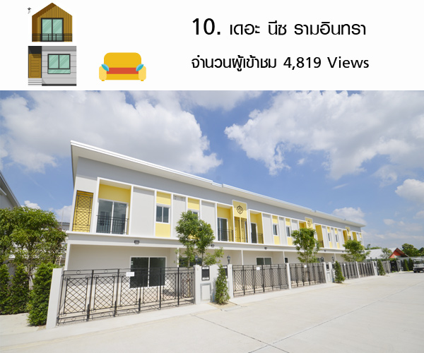 Townhome) กันมากมาย ดังนั้น เว็บไซต์ของเราจึงมีฐานข้อมูลเกี่ยวกับจำนวน Pageviews ที่คนเข้ามาเลือกดูเป็นจำนวนมาก ในแต่ละปีเราก็จะจัดอันดับที่อยู่อาศัยที่คนสนใจค้นหากันมากที่สุด สำหรับปี 2560 นี้ อันดับทาว์เฮ้าส์ ทาวน์โฮม (Townhome) ที่คนสนใจเข้าดูมากที่สุด 10 อันดับ จะเป็นโครงการไหนบ้าง และมีจำนวน Pageviews เท่าไหร่ ตามมาชมกันเลยค่ะ (สถิตินี้นับรวมตั้งแต่วันที่ 1 มกราคม 2560 - 7 ธันวาคม 2560)
