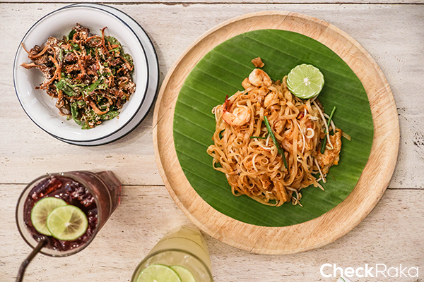 อาหารที่เราสั่งกันอย่างแรกเลยก็คือผัดไทยเส้นข้าวกล้อง ใส่กุ้งธรรมชาติ