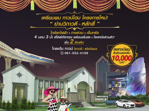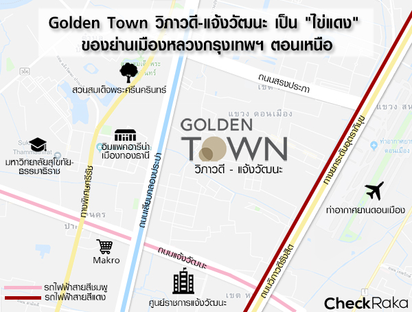 หลายครั้งของคนที่อยากได้ทาวน์เฮ้าส์-ทาวน์โฮมราคาไม่แพงเราก็จะนึกถึงทำเลที่ไกลออกไปจากเมือง ไม่ว่าจะเป็นย่านบางใหญ่ บางพลี พระราม 2 เป็นต้น แต่จริงๆ แล้วทำเลใกล้เมืองอย่างแจ้งวัฒนะ ดอนเมือง สรงประภา ทำเลที่รถไฟฟ้าสายสีแดงที่กำลังจะเสร็จ และสายสีชมพูกำลังจะเริ่มก่อสร้าง (ไม่นับโทลล์เวย์และถนนสายหลักอย่างวิภาวดีรังสิตที่เราคุ้นเคยกันอยู่แล้ว) เมื่อทำเลที่ตั้งเป็นใจสำหรับการอยู่อาศัย ทางโกลเด้นแลนด์จึงได้เตรียมเปิด ทาวน์โฮม 2 ชั้น พร้อมส่วนกลางสุดหรู มีโรงหนังส่วนตัว ในราคาแค่ 2.39 ล้านบาท โครงการนี้มีชื่อว่า "โกลเด้น ทาวน์ วิภาวดี-แจ้งวัฒนะ" ทำเลที่เดินทางสะดวกที่สุดในแถบกรุงเทพฯ ตอนเหนือ เราลองไปดูกันค่ะว่าทำเลนี้ดีอย่างไร
