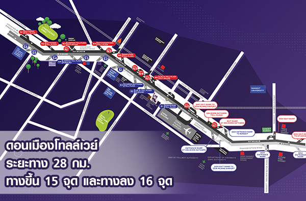 ภาพมุมสูงวิภาวดี-ดอนเมืองโทลล์เวย์ฝั่งเข้าเมือง