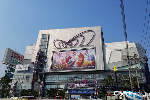 ภาพมุมสูงบริเวณใกล้ๆ แยกแคราย มีห้างเอสพลานาด ด้านข้างเป็นอุทยานมกุฏรมยสราญ