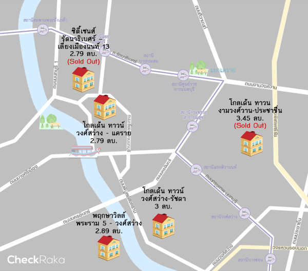 จากภาพจะเห็นว่า มีโครงการของโกลเด้นแลนด์อยู่ถึง 3 โครงการ รวมไปถึงโครงการที่เรากำลังพูดถึงคือ โกลเด้น ทาวน์ วงศ์สว่าง - แคราย ส่วนอีก 2 โครงการอย่าง