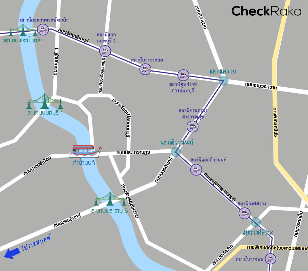 แผนที่การเดินทางจากโครงการไปยังรถไฟฟ้าสายสีม่วง สถานีแยกนนทบุรี 1