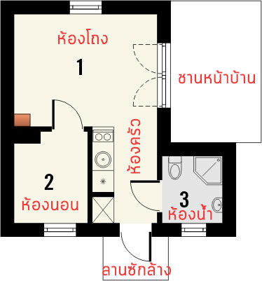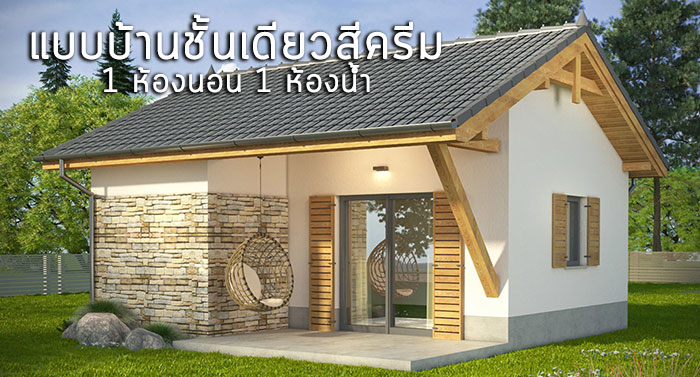 แบบบ้านชั้นเดียวสีครีม 1 ห้องนอน 1 ห้องน้ำ