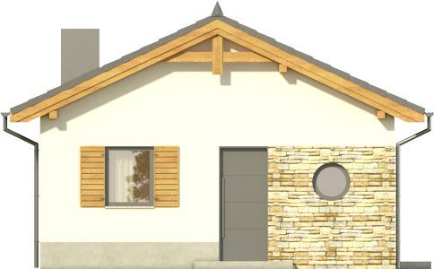 หลังบ้าน ด้านซ้ายเป็นหน้าต่างของห้องนอน มีประตูจากห้องครัวออกมาลานซักล้างได้ ขวามือเป็นช่องแสงของห้องน้ำ
