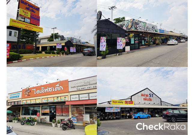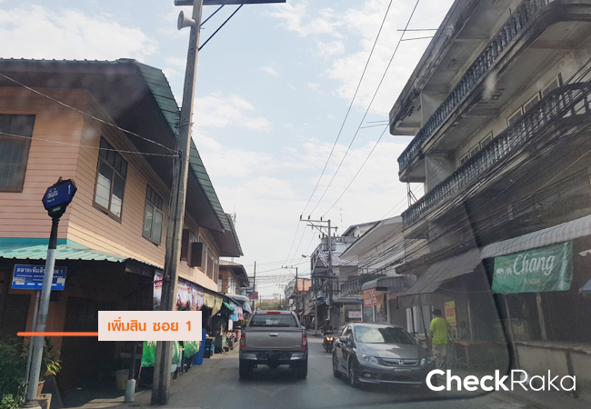 เลี้ยวขวาออกจากหน้าโครงการ ตรงไปตามถนนเพิ่มสินประมาณ 2.3 กม. สองข้างทางเป็นร้านค้า ร้านอาหาร