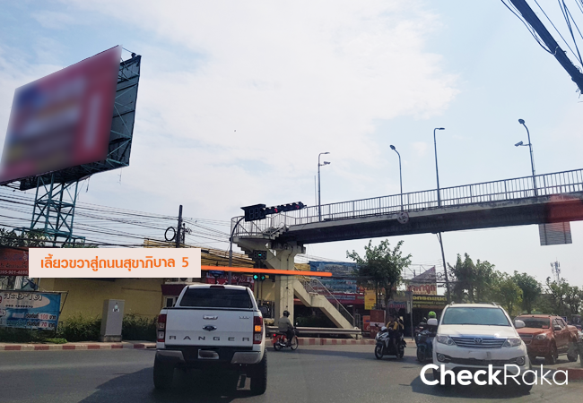 เมื่อถึงแยกถนนเพิ่มสิน ตัดกับถนนสุขาภิบาล 5 ให้เลี้ยวขวา