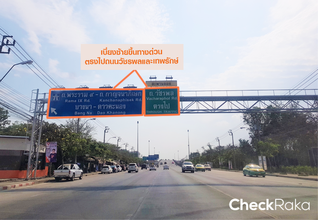 ตรงไปเรื่อยๆ ตามถนนเทพรักษ์ประมาณ 4.3 กม. ให้เตรียมเลี้ยวเข้าถนนวัชรพล