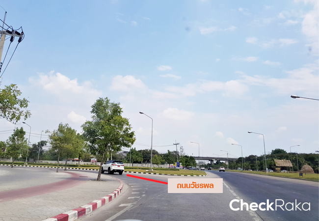 เลี้ยวซ้ายเข้าสู่ถนนวัชรพล ตรงไปอีกประมาณ 3 กม.