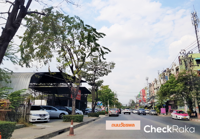 บรรยากาศบนถนนวัชรพล ถนนเส้นเล็กๆ แต่กลับเต็มไปด้วยร้านค้า ร้านอาหารตลอด 2 ข้างทาง