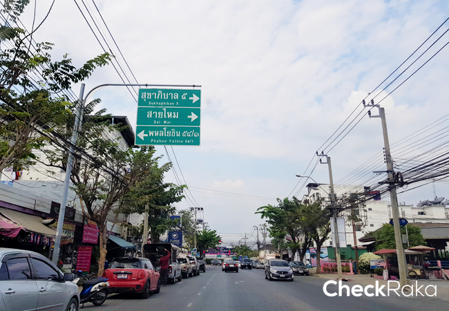 เริ่มต้นจากถนนพหลโยธิน จากตลาดยิ่งเจริญ ตรงไปประมาณ 600 เมตร