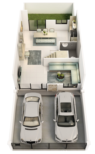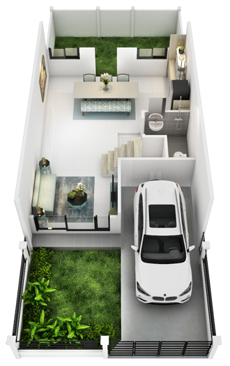 1. แบบบ้าน 20 ตารางวา : ทาวน์โฮม 2 ชั้น หน้ากว้าง 5.5 เมตร ที่ดินเริ่มต้น 20 ตร.ว. พื้นที่ใช้สอย 130 ตร.ม. 3 ห้องนอน 3 ห้องน้ำ ที่จอดรถ 2 คัน