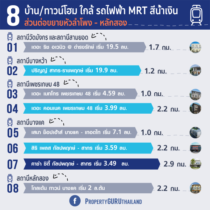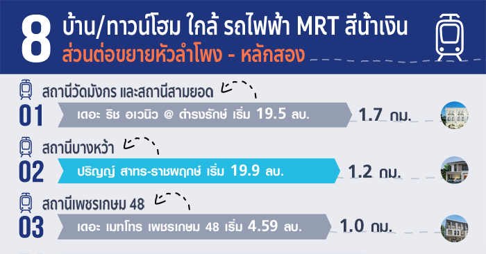 แนะนำบ้าน: 8 บ้าน+ทาวน์โฮม ใกล้รถไฟฟ้า "MRT สีน้ำเงินช่วงหัวลำโพง - หลักสอง"