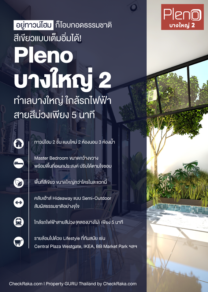 อยู่ทาวน์โฮม ก็โอบกอดธรรมชาติสีเขียวแบบเต็มอิ่มได้! กับ Pleno บางใหญ่ 2 ทำเลดีใกล้รถไฟฟ้าเพียง 5 นาที