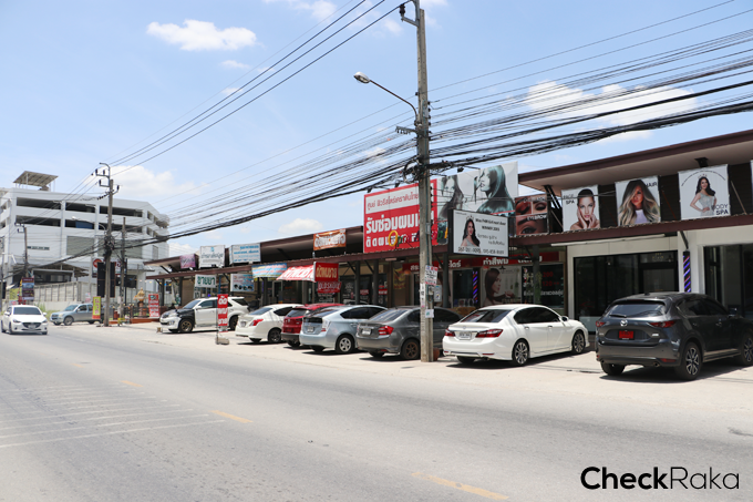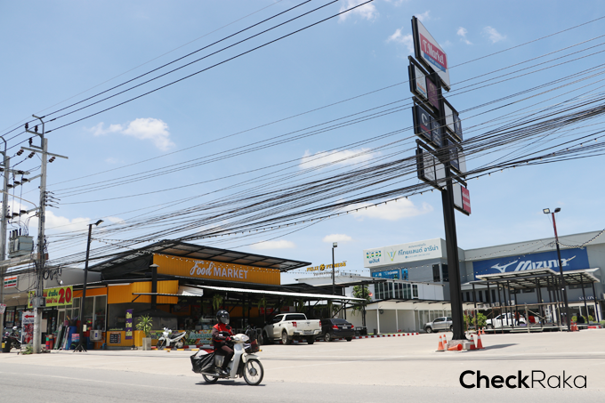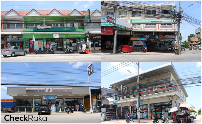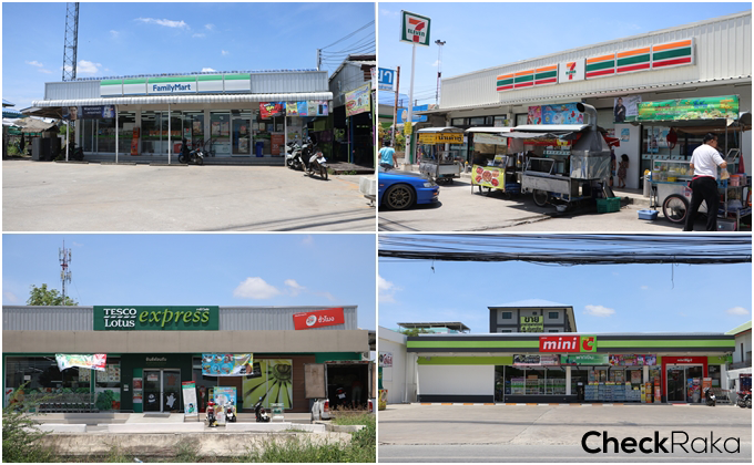 ร้านสะดวกซื้อเรียงรายไม่ขาดตั้งแต่ต้นถนน จนถึงโครงการ