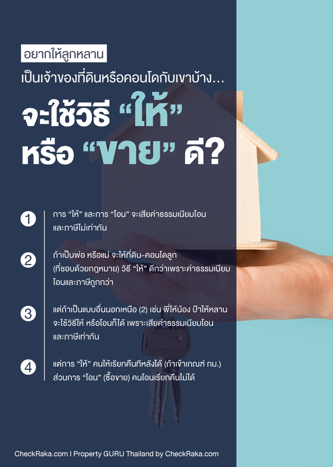 อยากโอนบ้านที่ดิน-คอนโดให้ลูกหลาน จะใช้วิธี "ให้" หรือ "ขาย" ดี? แบบไหนเสียค่าใช้จ่ายถูกกว่ากัน