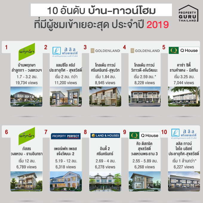10 อันดับ บ้าน-ทาวน์โฮม ที่มีผู้ชมเข้าเยอะสุด ประจำปี 2019