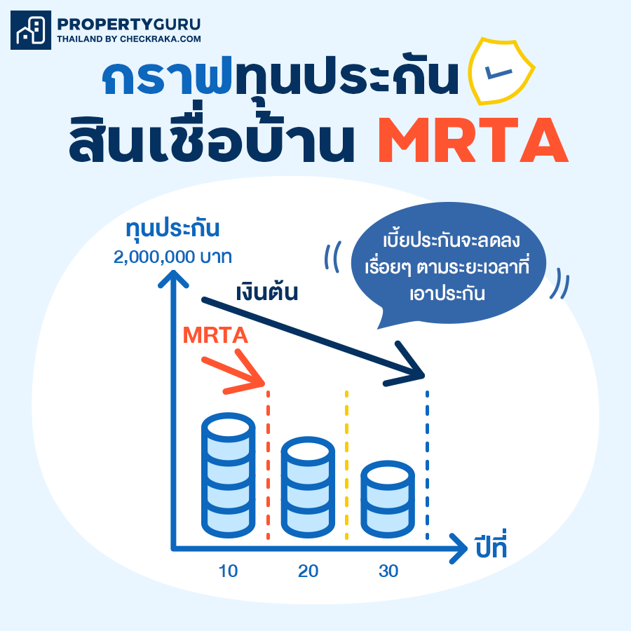 ประกันสินเชื่อ MRTA (บ้าน หรือ คอนโด) ประกันสินเชื่อ (บ้าน หรือ คอนโด) MRTA (Mortgage Reducing Term Assurance) ในบทความนี้จะขอเรียกว่า "ประกันสินเชื่อ MRTA" แล้วกัน ประกันตัวนี้มีจุดประสงค์เพื่อคุ้มครองสินเชื่อของเรากับธนาคาร เมื่อเราเกิดเสียชีวิตขึ้นมาในระหว่างที่อยู่ในระยะเวลาคุ้มครอง บริษัทประกันก็จะมาจ่ายยอดหนี้ที่เหลือของเราให้กับธนาคารแทนนั่นเอง