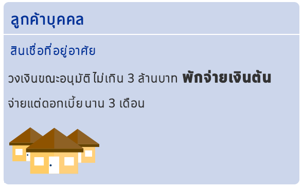 พักชำระเงินต้น 3 เดือน สำหรับสินเชื่อเพื่อที่อยู่อาศัย วงเงินสินเชื่อไม่เกิน 3 ล้านบาท