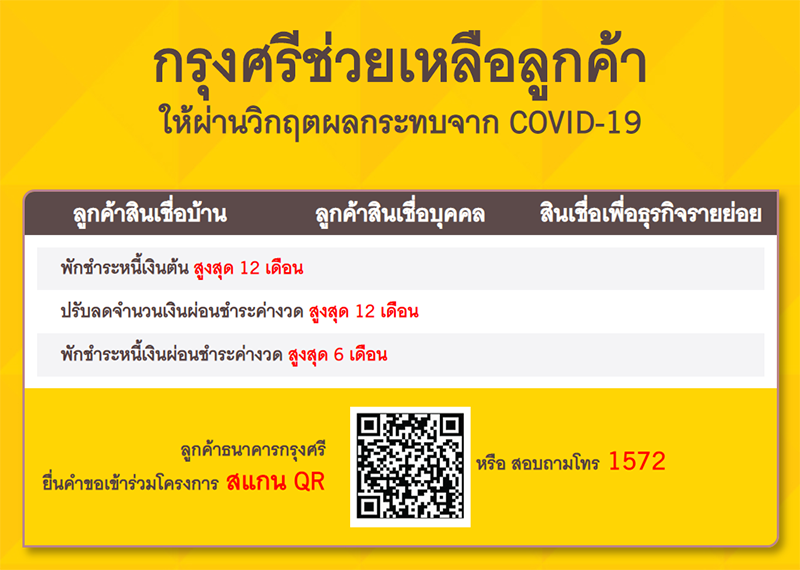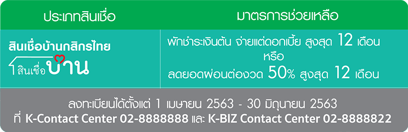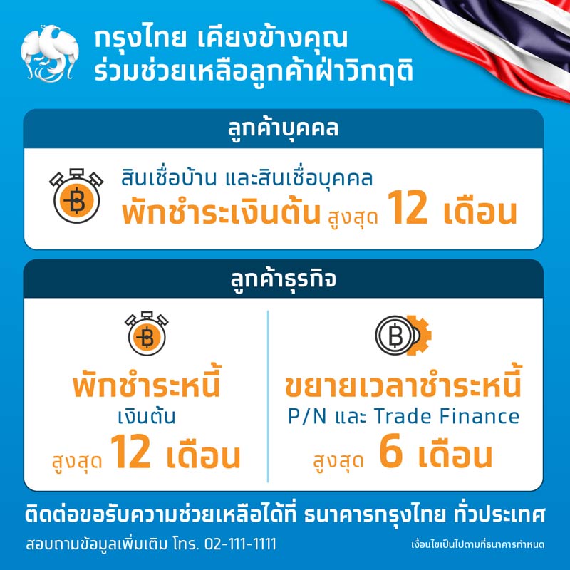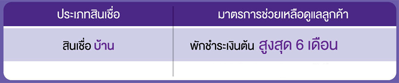 - พักชำระหนี้สูงสุดนาน 6 เดือน หรือมาตรการขยายเวลาชำระหนี้