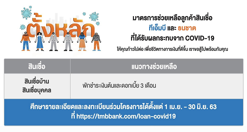 หมายเหตุ- ลูกค้าสินเชื่อบ้าน ของธนาคารไทยพาณิชย์ที่ได้รับผลกระทบทางเศรษฐกิจทุกคนสามารถสมัครเข้าร่วมโครงการได้ โดยไม่มีเกณฑ์ขั้นต่ำในด้านระยะเวลาของการเป็นลูกค้า หรือวงเงินต่อบุคคล