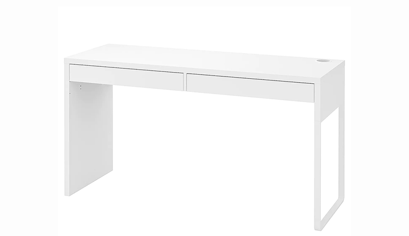 MICKE มิคเก้ โต๊ะทำงานขาว ขนาด 142x50 ซม. พร้อมช่องด้านหลัง ช่วยเก็บสายไฟให้เป็นระเบียบ ราคา 3,690 บาท