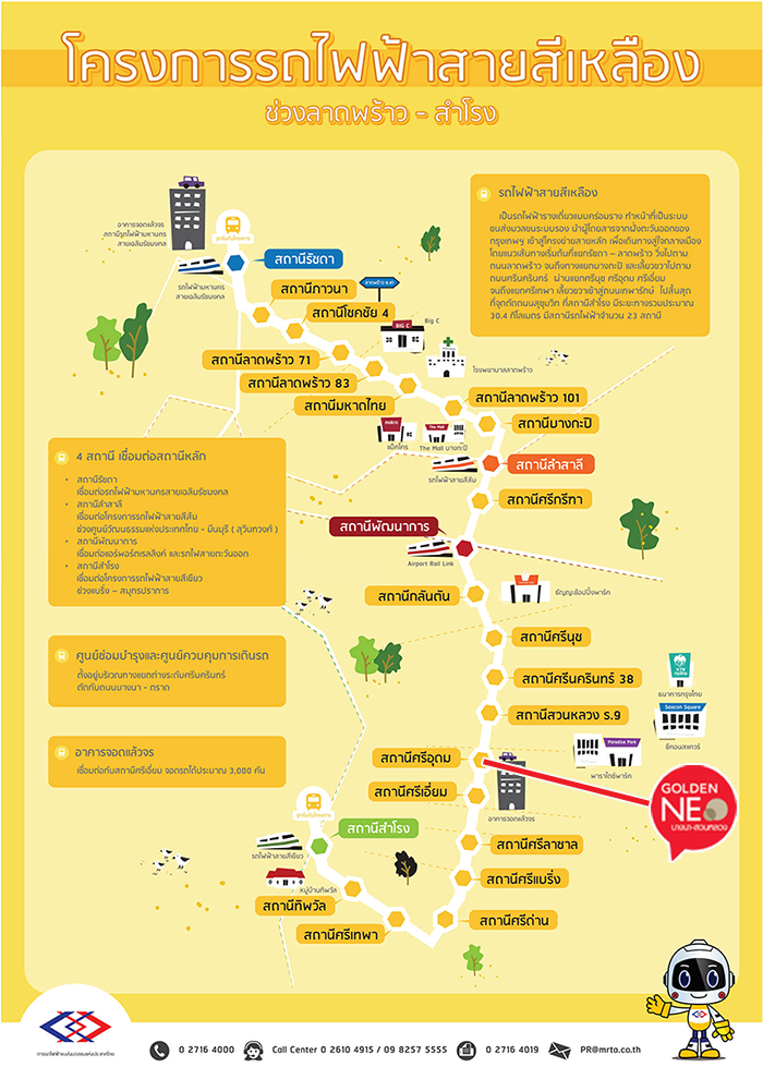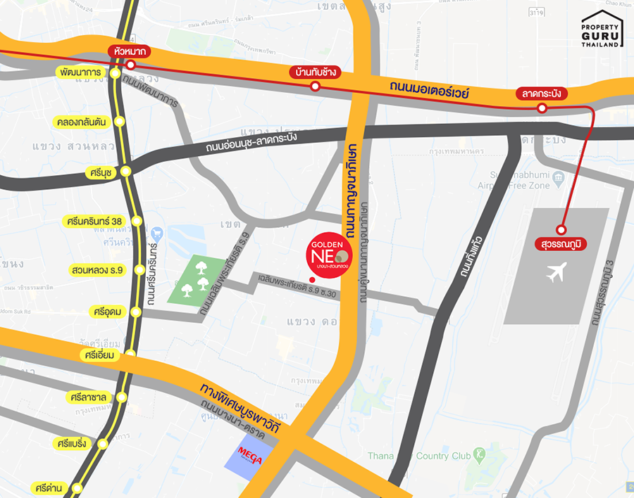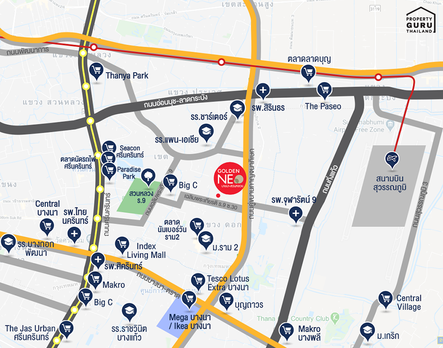 โครงการโกลเด้น นีโอ บางนาสวนหลวง อยู่ห่างจากรถไฟฟ้าสายสีเหลือง สถานีศรีอุดม ประมาณ 6 กิโลเมตร