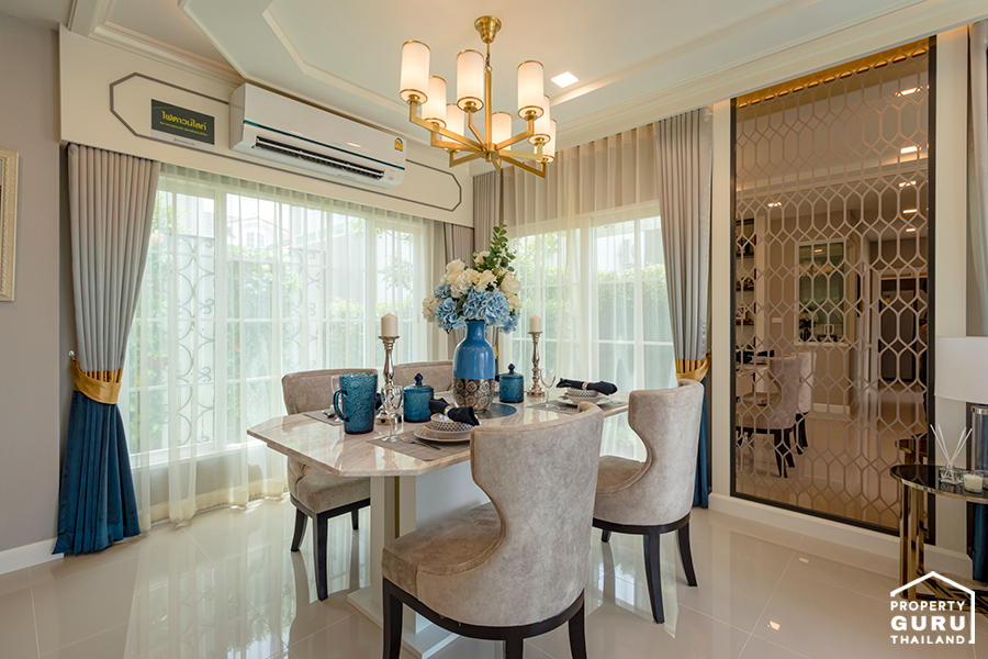 พื้นที่รับประทานอาหารขนาดใหญ่ รองรับชุดรับประทานอาหารได้มากถึง 6 ที่นั่ง พร้อมกับประตูและหน้าต่างด้านข้าง