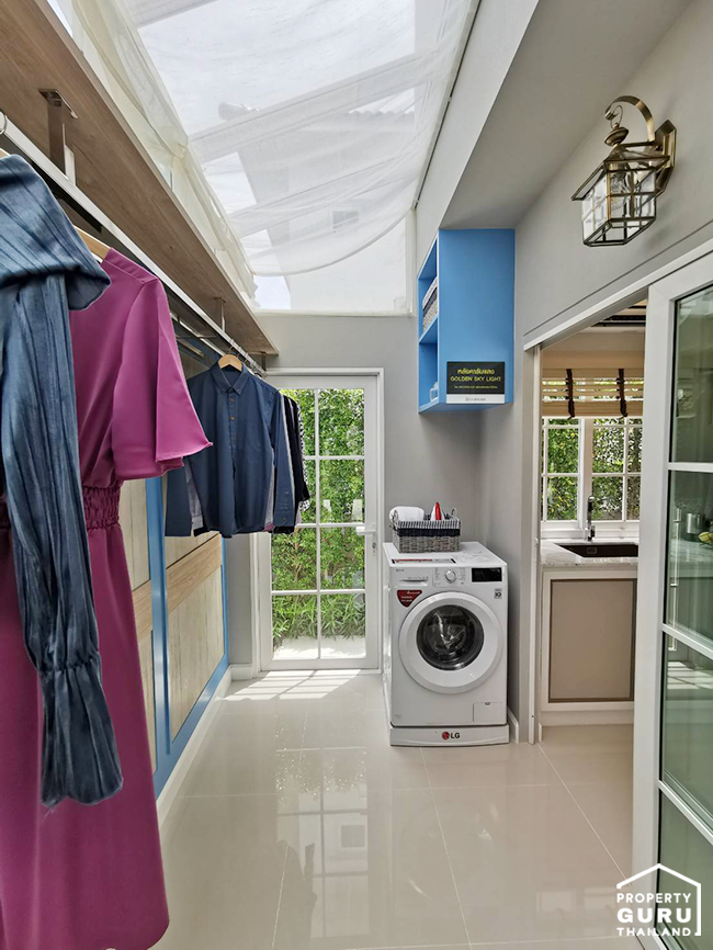 Glass House Laundry ที่มี Sky Light เพื่อให้แสงส่องเข้าถึง เป็นพื้นที่สำหรับซัก อบ รีด หรือจะใช้ตากผ้าในวันฝนตกก็ได้