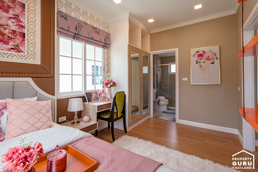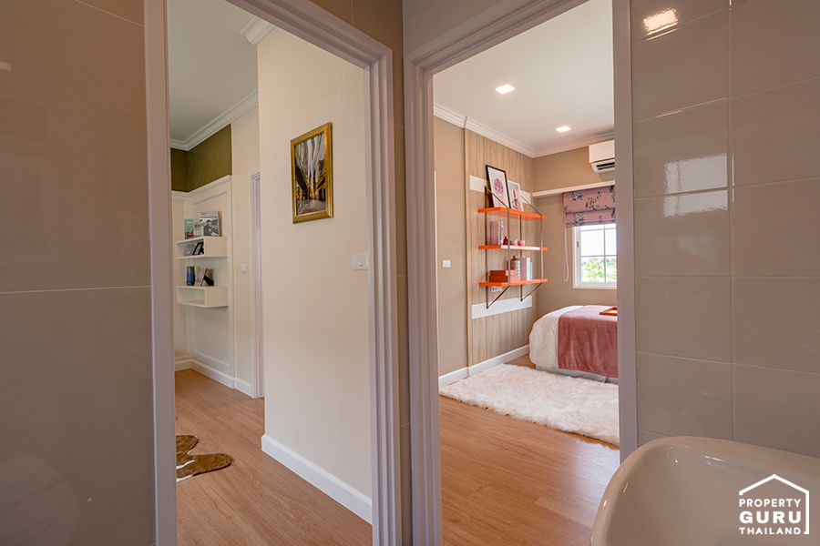 มีทางเข้าห้องน้ำจากภายในห้องนอน วางเตียงนอน ตู้เสื้อผ้า และโต๊ะเครื่องแป้งได้พอดี