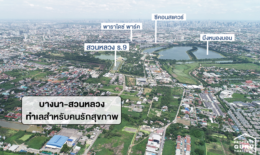 แม้จะมีการขยายตัวอย่างต่อเนื่อง แต่ทำเลนี้ยังมีพื้นที่ขนาดใหญ่เหลือพอให้พัฒนาที่อยู่อาศัย ซึ่งส่วนใหญ่พื้นที่โดยรอบจะเป็นที่อยู่อาศัยแนวราบ และโครงการขนาดใหญ่ ที่เน้นความสงบ และบ้านที่มีบริเวณ มีความเป็นส่วนตัวสูง ไม่พลุกพล่าน และยังถือเป็นทำเลสำหรับคนรักสุขภาพ หากใครอยากสูดอากาศบริสุทธิ์ วิวสวยๆ กว้างๆ ก็สามารถไปวิ่งออกกำลังกาย หรือไปพักผ่อนหย่อนใจกับครอบครัวได้ที่สวนหลวง ร.๙ ได้เลยค่ะ
