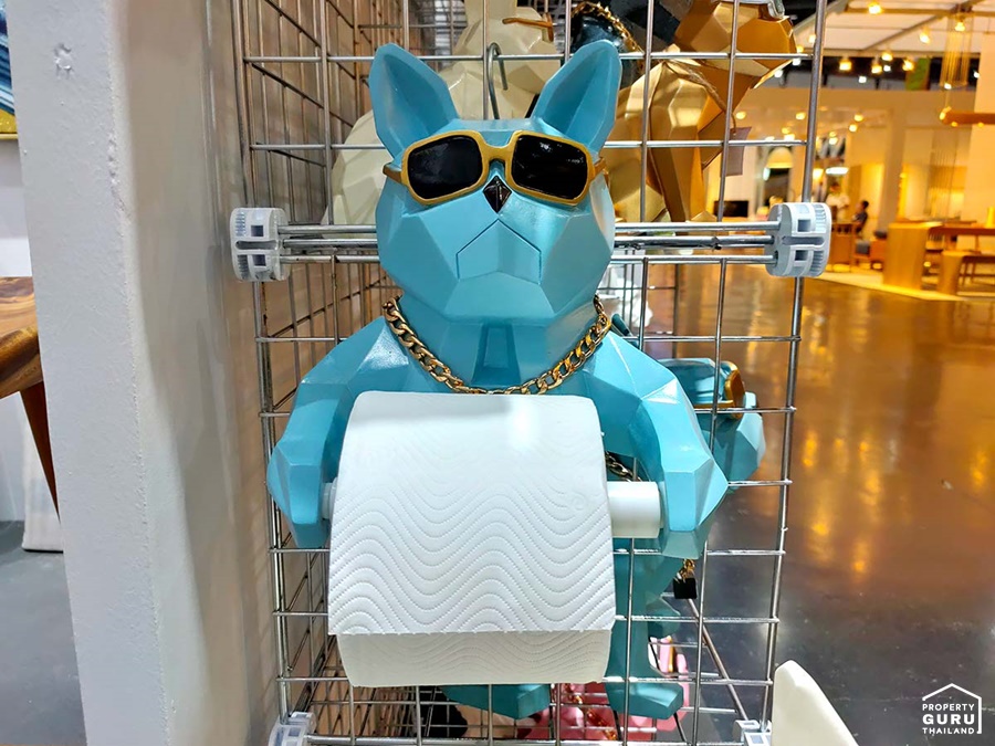 น้องหมาที่เห็นนี้คือที่ใส่กระดาษทิชชู่ มีทั้งแบบที่แขวนไว้ด้านหน้าแบบนี้ ราคาเริ่มต้น 950 บาท