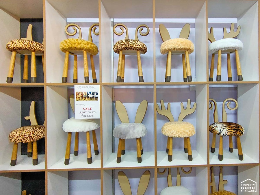 ในงานมีทั้งเก้าอี้สำหรับเด็กที่มาพร้อมเบาะรองนั่งขนนุ่มๆ สามารถถอดซักได้ ราคา 1,120 บาท