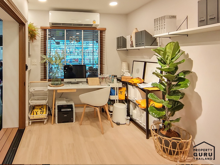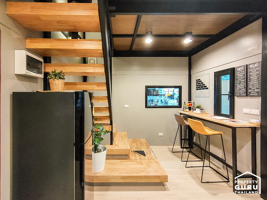ด้านในจะเป็นพื้นที่ห้องนั่งเล่นดูทีวี และวางโต๊ะทำงานได้
