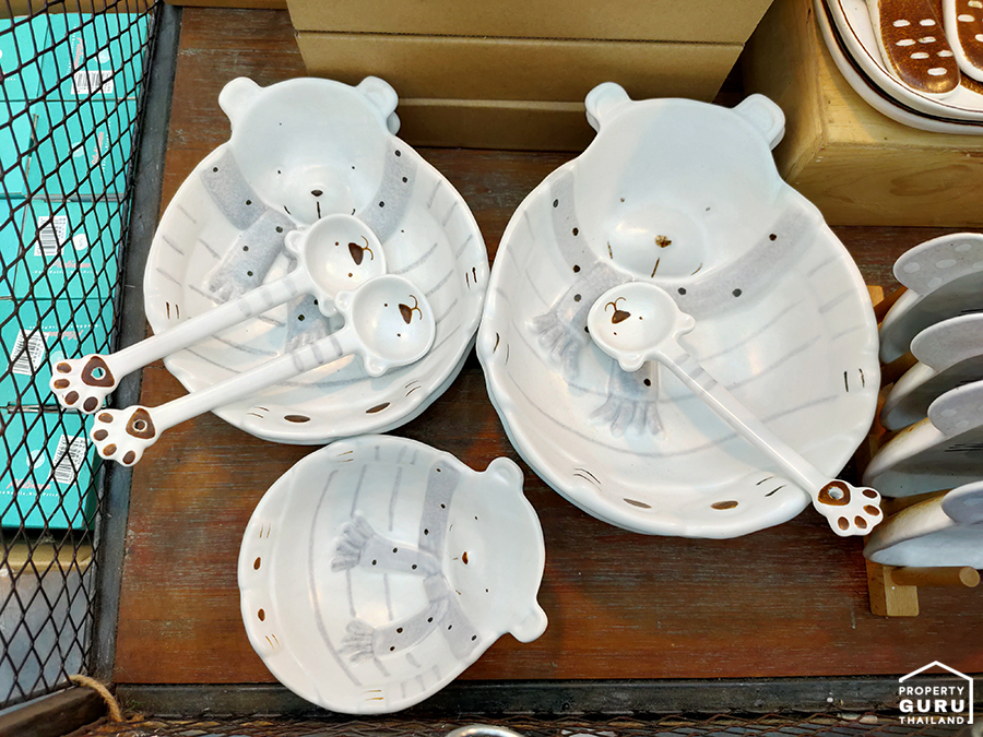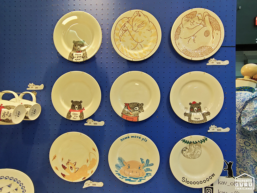 มีให้เลือกหลายลาย ร้านเขียนว่า "เข้าไมโครเวฟและเครื่องล้างจานได้" เพราะเป็นเซรามิก ทนความร้อน